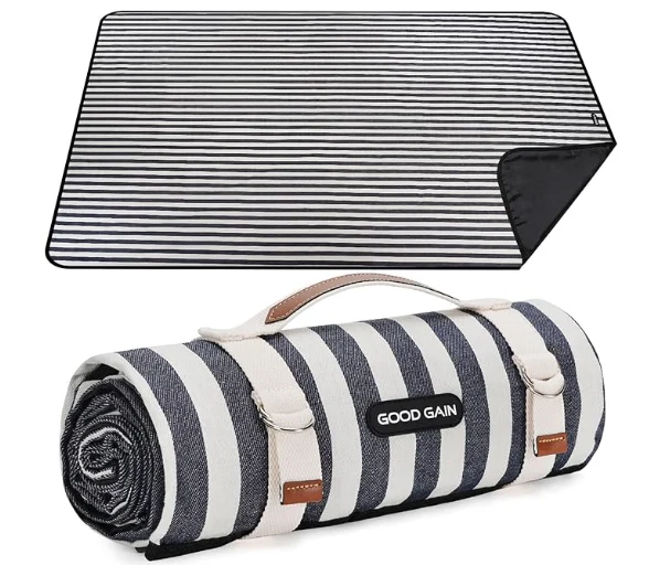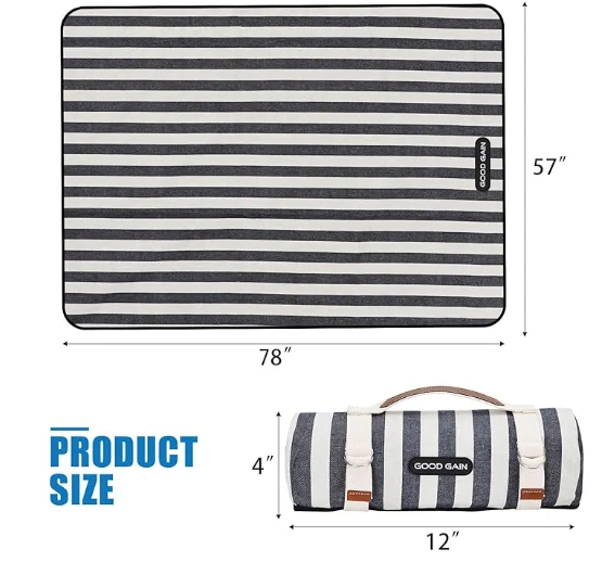 Bohemyske waterdicht picknickmat, omgean mei riem mei dûbele ring-buckle is handich om te dragen, en kin de picknickmatte maklik foldje en in soad romte op besparje op 'e reis.