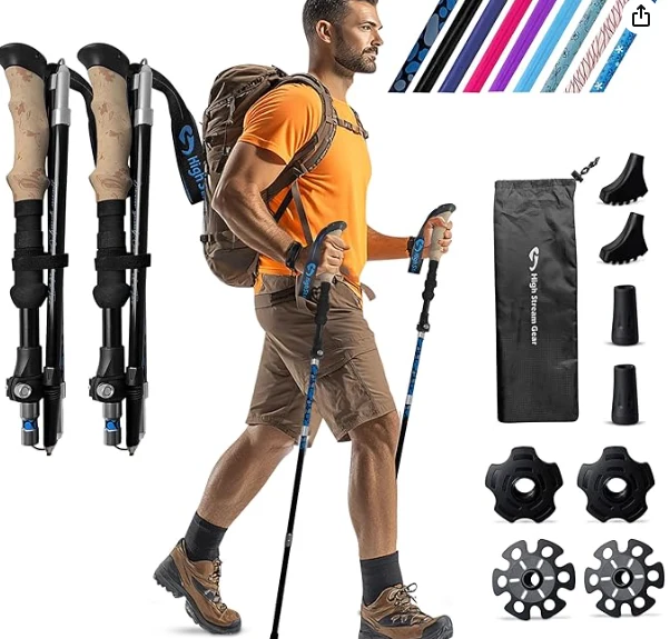 Ynklapbere Nordic Hiking Pole.findable-poalen foar backpacking, oefenje en reizgje en reizgje, set fan 2 aluminium Nordic Collaple Trekking Poles
