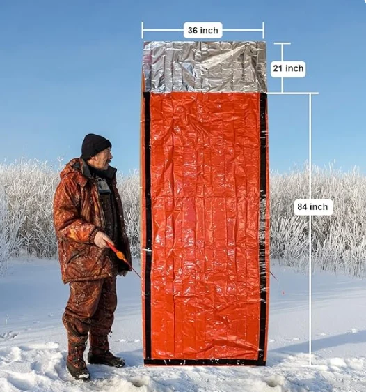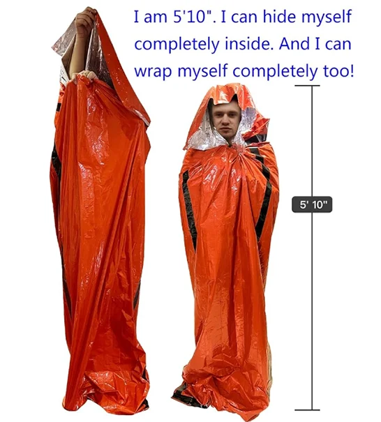 Emergency Survival Sleeping Sint kin jo kânsen fan oerlibjen yn alle waar ferheegje, alle seizoenen en alle omstannichheden. It is makke fan duorsume isolearjende mylarmateriaal ûntworpen troch NASA foar romte-ferkenning. It behâldt / reflekteart 90% fan it lichem hjittens werom. It is reusable, waterdicht en wyndicht.