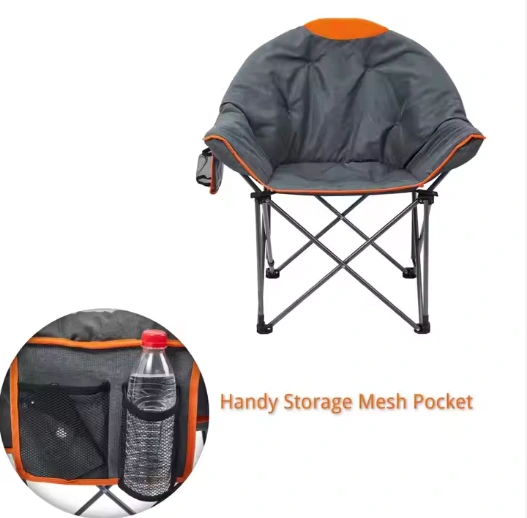 Foldable Moon Stoel. Fan 600D-katteryske stofstoel, sêft, sykheljen en dikje, folslein padd foar rûnen foar huning foar it gazon, kampearten, camping, fiskerij, sporteveneminten en oare bûtenaktiviteiten. In goede kompanjon foar bûtenreizen.