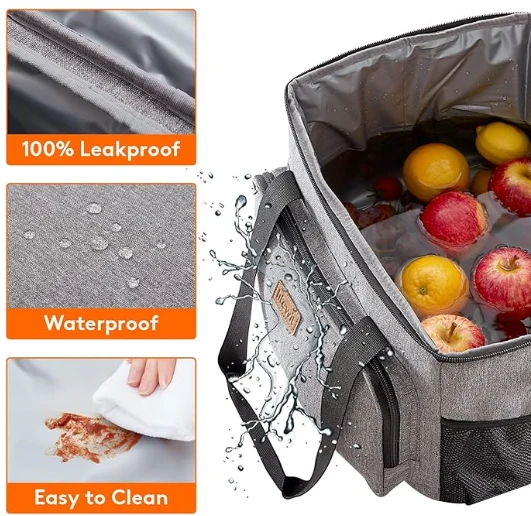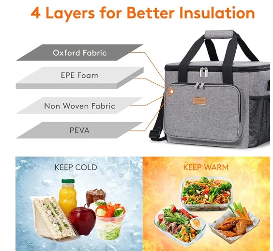 Isolearre picknick-tas, lunsjbak is makke fan isolearre materiaal dat iten kin hâlde en koelje cool as waarm foar mear dan 5 oeren. Neist, de ynterieurflater is makke fan Peva-folie fan fiedingsklean, sadat jo jo iten direkt yn 'e tas kinne sette sûnder ien soargen. De ynboude 6mm Epe-foam biedt grutte beskerming oan jo konteners, iten en drinken.