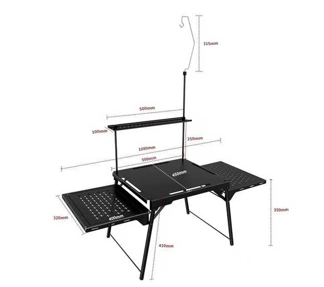 Portable folding aluminium-Iron Camping-tafel, ytse tafelplatfoarm is gearstald út boppeste, midden, en legere dielen, mei foldwaande romte foar it bewarjen fan alle soarten tafelrjochting, iten, en kanten.
